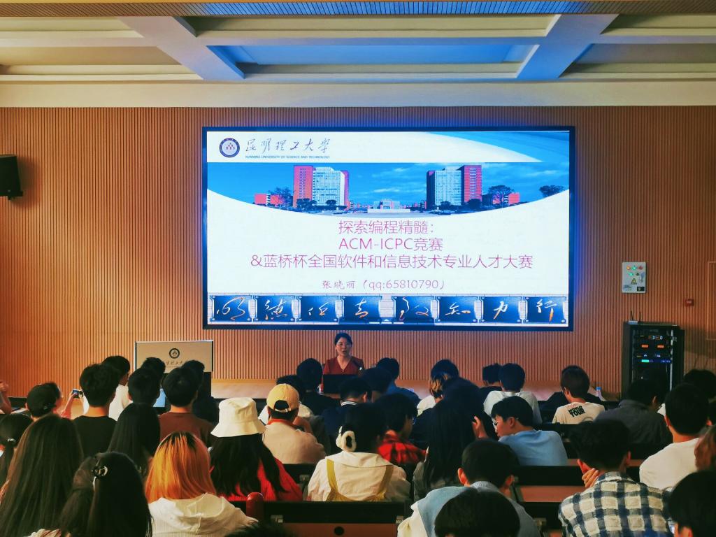 张晓丽老师从ACM-ICPC国际大学生程序设计竞赛和蓝桥杯全国软件和信息技术专业人才大赛的背景与意义、两种竞赛的共同点与区别、比赛形式以及如何备赛等方面做了详细阐述。