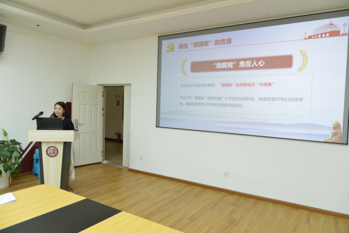 学生党支部全体党员讲授廉洁自律廉政课,进一步引导青年学生党员不断夯实理论基础,树立廉洁意识,筑牢思想防线,做到廉洁从学。
