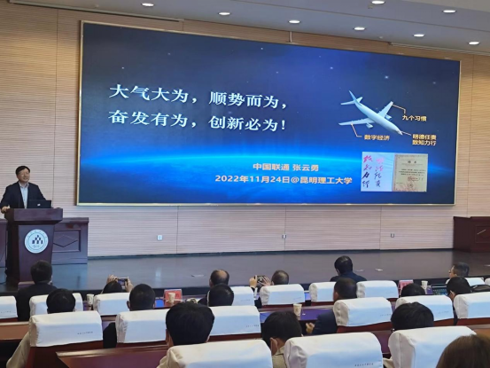 2022年11月24日下午,中国联通云南省分公司党委书记、总经理张云勇赴我校为信自学院师生讲授题为《大气大为,顺势而为,奋发有为,创新必为》的专题讲座。