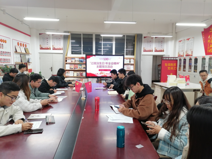 三个支部一起为21位党员同志过政治生日,三个支部的支部书记和邹恒老师一起为过政治生日的同志逐一送上“生日贺卡”并合影留念,之后全体党员重温入党誓词,提醒党员始终牢记入党时的铮铮誓言,让党员拥有党组织这个家的归属感,激发党员的工作热情和无私奉献的精神。
