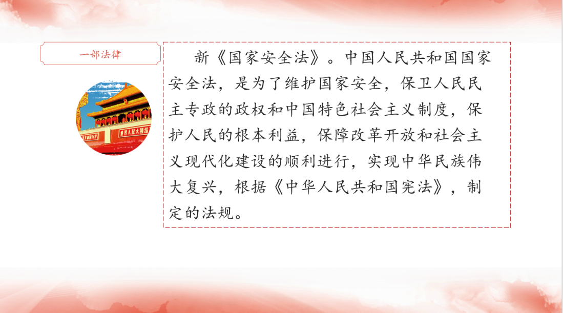 会议开始,全体成员回顾国家安全教育日的由来以及历年活动主题。全民国家安全教育日是为了增强全民国家安全意识,维护国家安全而设立的节日。2015年7月1日,全国人大常委会通过的《中华人民共和国国家安全法》第十四条规定,每年4月15日为全民国家安全教育日。今年的4月15日是第八个全民国家安全教育日。主题是“贯彻总体国家安全观,增强全民国家安全意识和素养,夯实以新安全格局保障新发展格局的社会基础”。