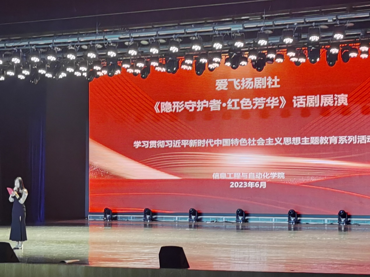 而后,大家有序进入红土会堂入座观看爱飞扬话剧社的话剧演出《隐形守护者-红色芳华》。