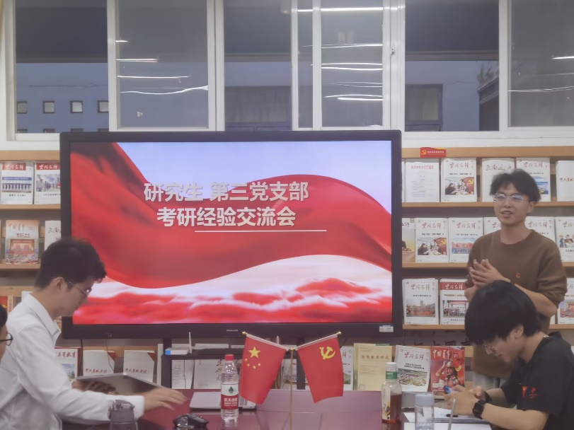 在此次活动中,研究生第三党支部的孙资钦同志为我们讲解了考研的相关事宜,从考研的前期准备、复习内容、考试技巧等方面进行了详细的介绍,为本支部的同志们提供了许多方法和建议。