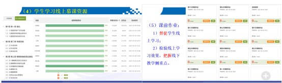 课前组织学生进行线上学习前的引导性思考,然后带着问题去学习指定节次的内容,通过平台学习数据掌握学生的学习状态,除了课前慕课学习之外,对于学习效果的前测也非常重要,在每次课前,都准备了一定量的前测试题用于评估线上自主学习效果,同时也为课堂教学提供重要的参考。