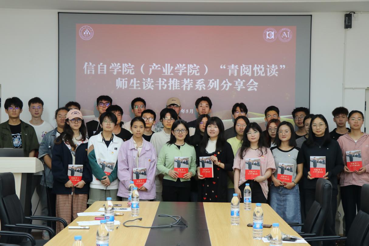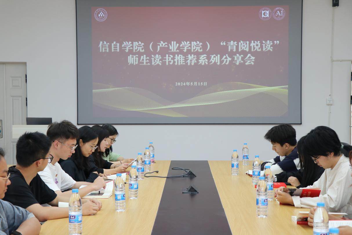 (人工智能产业学院)于5月15日在信自237会议室举办了“青阅悦读”师生读书推荐系列分享会,学院党委副书记郑婷婷出席本次活动,团委老师万松、苏蕊以及青卓班全体成员参加活动。