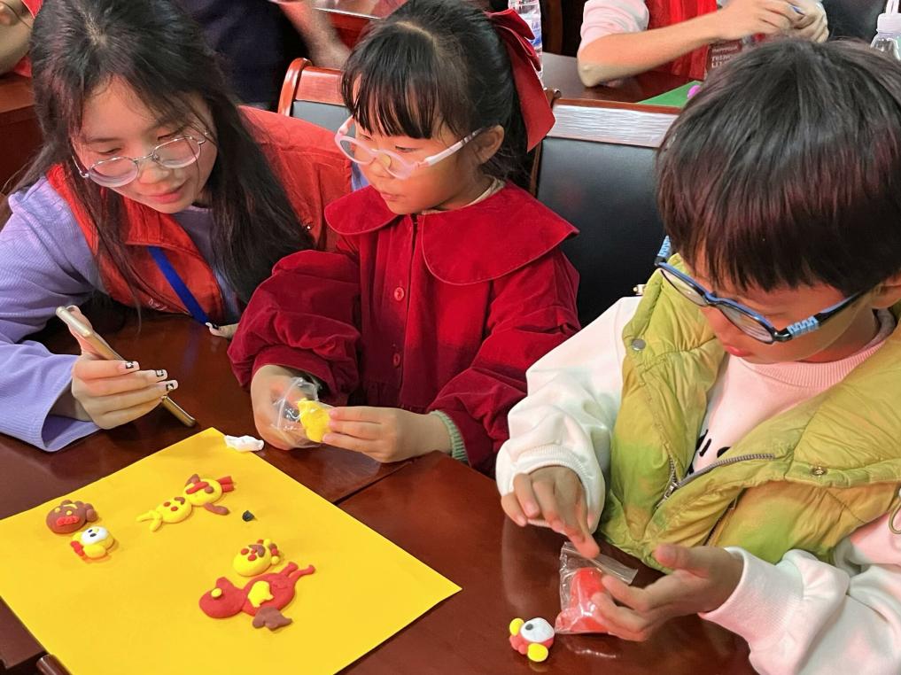 活动伊始,社区小朋友们在志愿者的引导下分成多个小组开展活动。首个活动内容是画画接龙,小朋友们齐心协力,每个人轮流进行绘画,将自己的独特创意融入至集体画作中,共同完成一幅绘画作品,并由志愿者为大家展示最终作品。随后,在志愿者的协助下,小朋友们利用黏土和彩铅在各自的卡纸上创造出各式各样独特的创意作品,从中展现了他们丰富的想象力和创造力。在活动的最后环节,社区小朋友们积极上台向大家展示并分享作品。